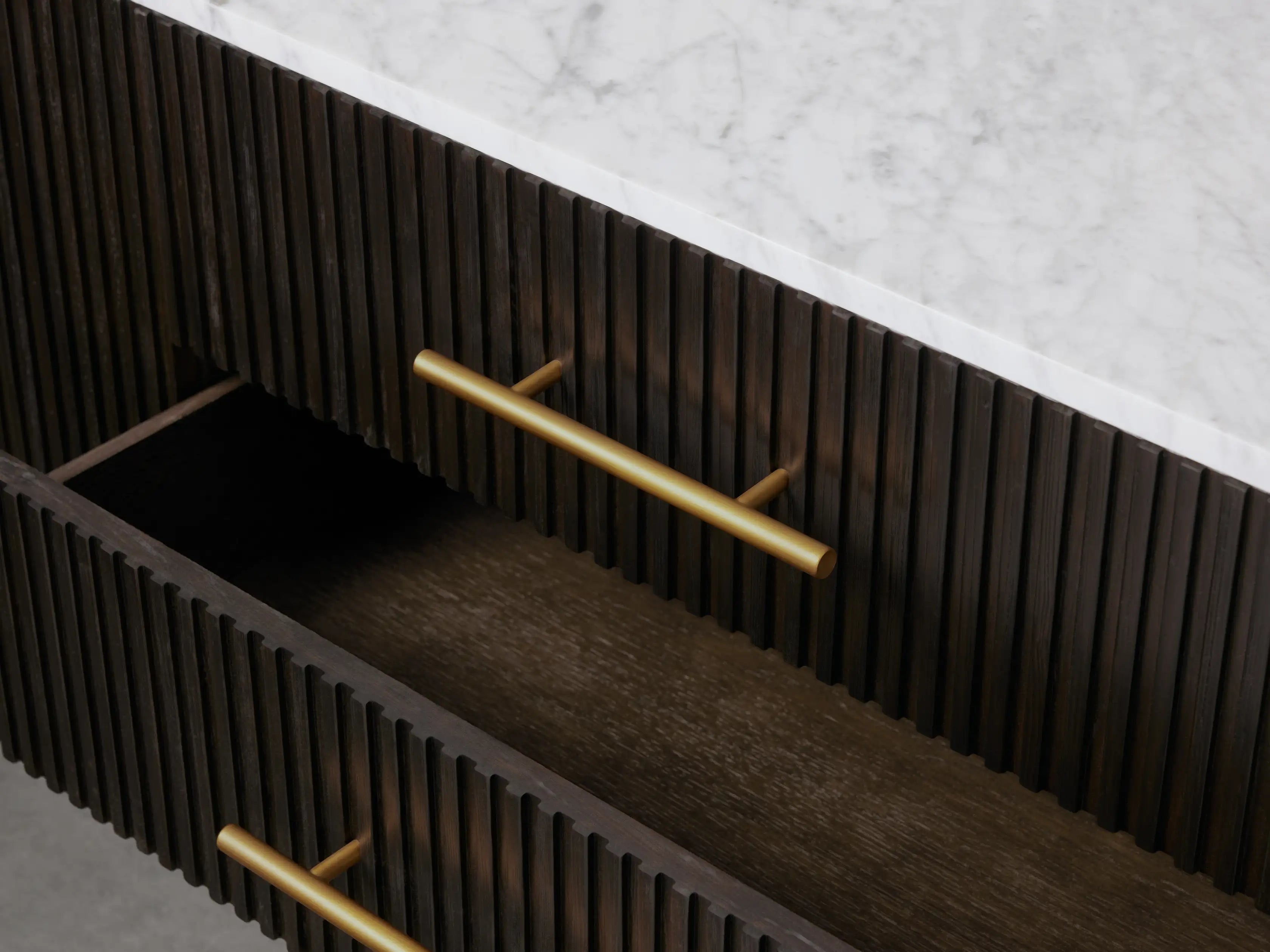 Our Finnley Collection showcases a stunning mixed-material design, inviting elevated style into any space. Hand-finished pine from Finland or white oak wood is luxuriously accented by reeded oak detailing complemented by stone tops. The result is an eclectic-yet-chic accent piece that easily fits into the aesthetic of your home from the living and dining rooms to bedrooms, office spaces, and more.