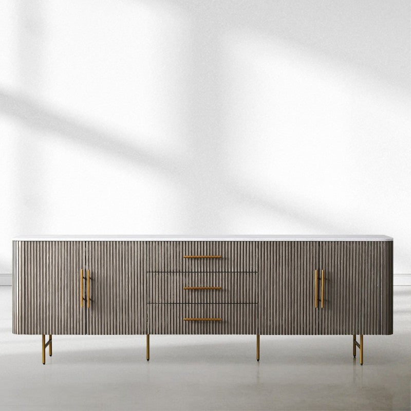 - Levelers on the bottom of each leg ensure sideboard sits evenly on uneven floors.
