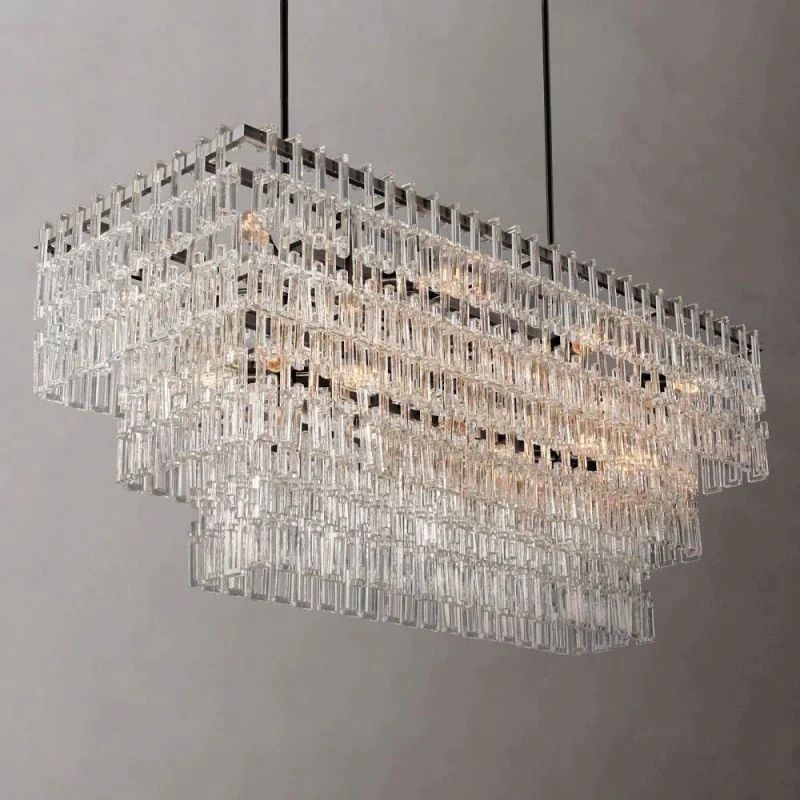 This collection of lamps, pure and minimalist in style, features stunning, interlocking open and closed chains designed with crystalline crystals. The stylized chains are suspended without wires, creating an elegant cascade of shimmering light.