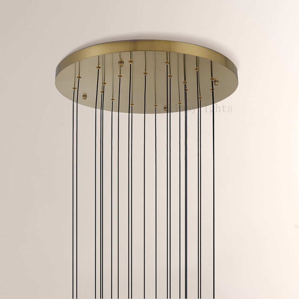 This stunning chandelier features a cascading design with multiple textured glass orbs, suspended from a metal canopy. Blending modern artistry and luxurious ambiance, it’s an ideal statement piece for upscale American stairwells, entryways, or high - ceiling living spaces, creating a captivating visual focal point.