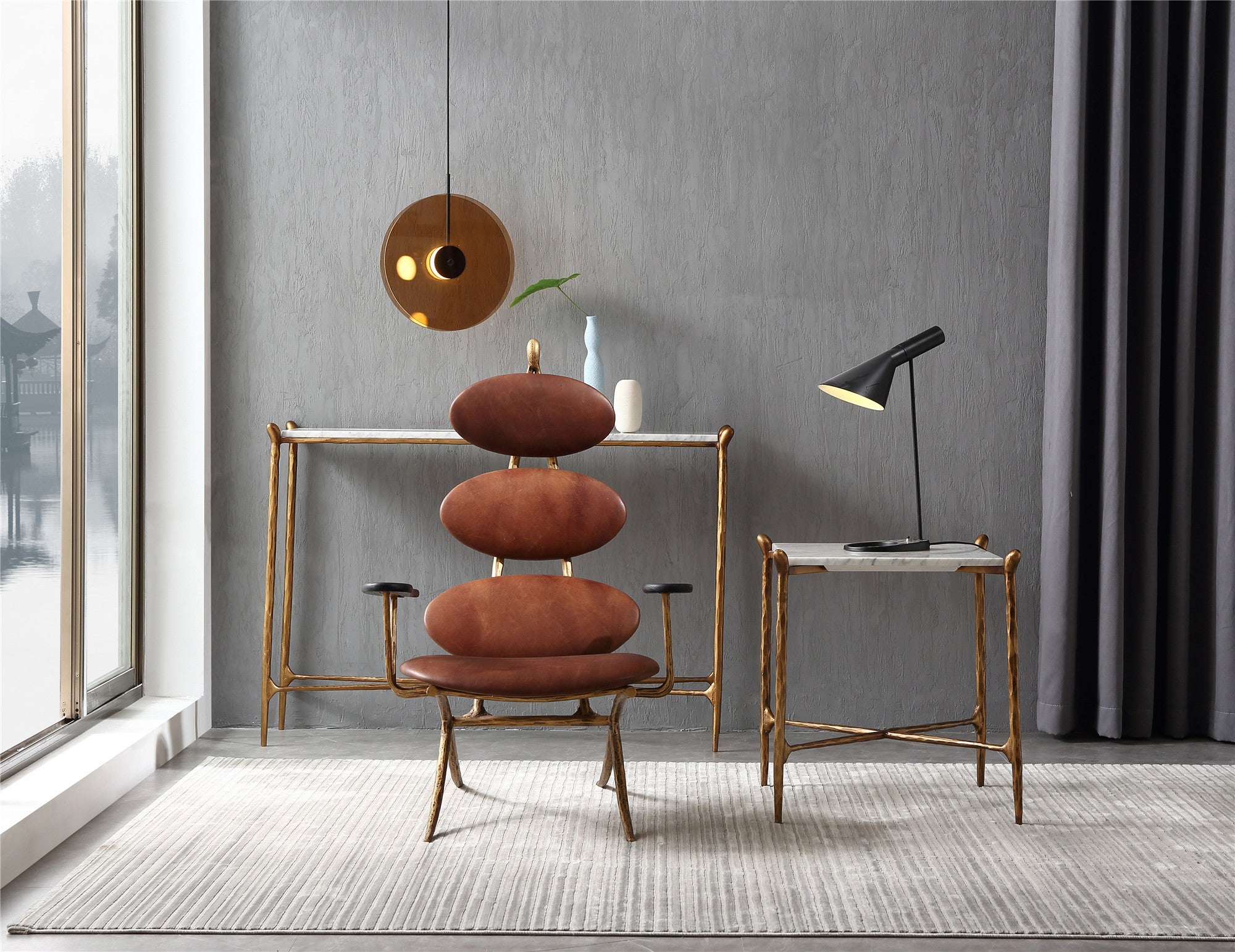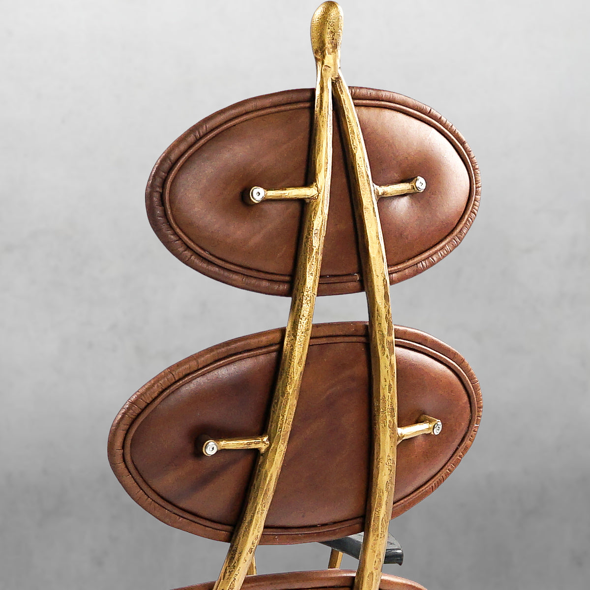 Our chair from the rustic sensibility of a hand-forged metal base with supple leather. Employing an ancient fabrication process, artisans hand hammer the metal bars to reveal an alive, imperfect and organic texture, a counterpoint to the frame's slender, tapered silhouette.- Frame is forged of solid metal and hammered by hand