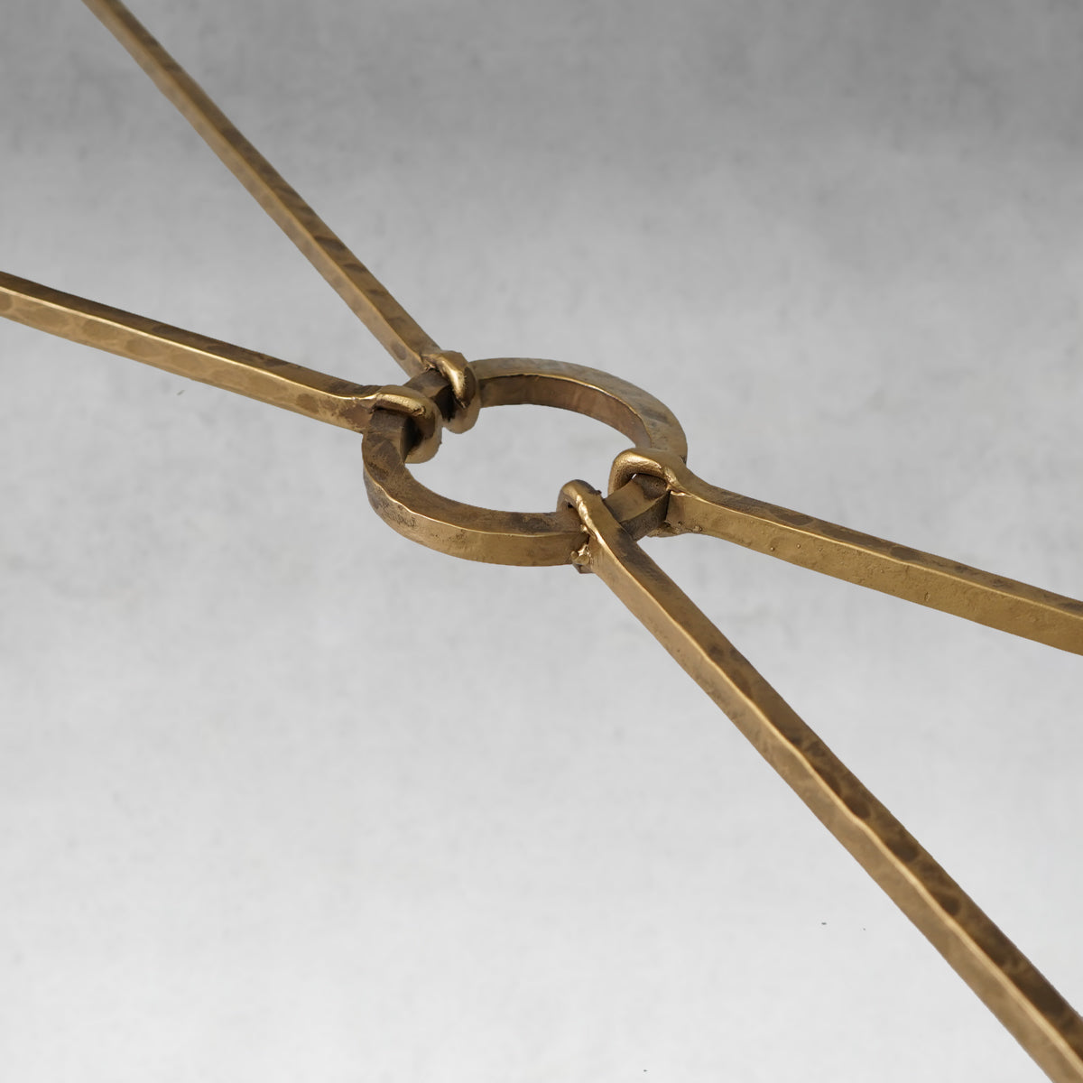 Inspired by 19th century French garden tables, neoclassical forms are reimagined with a modern sensibility. The slim frame features an X-shaped stretcher combined with a rounded center piece that showcases the beauty of hand-cast metal and adds exquisite detail.- Frame is forged of solid metal and hammered by hand.
