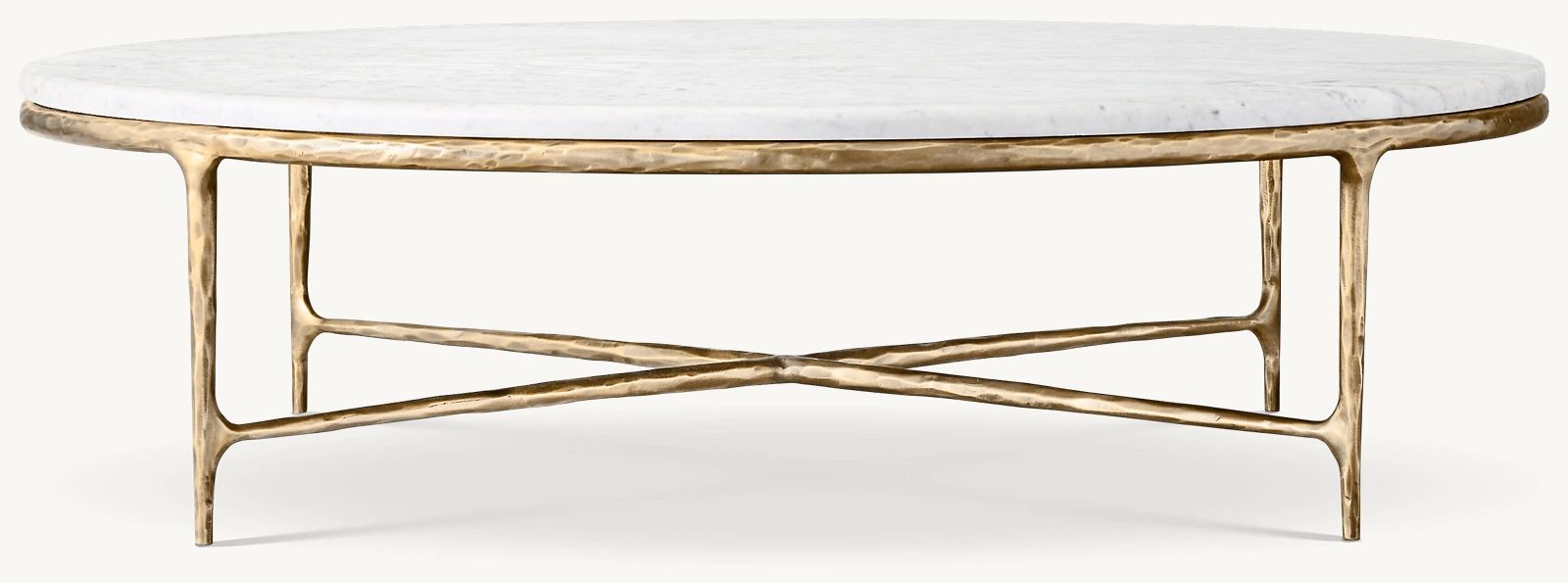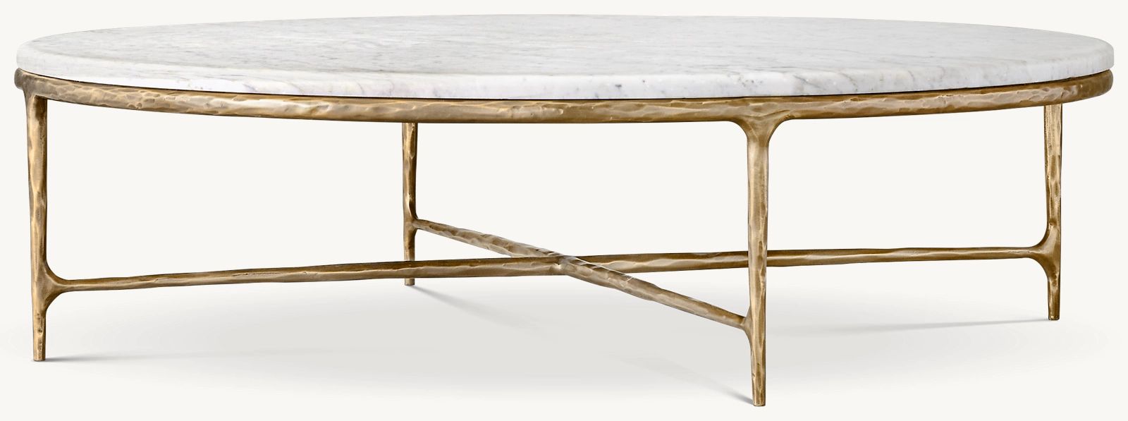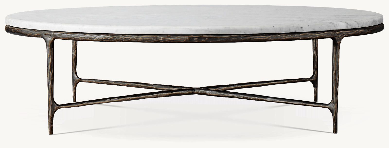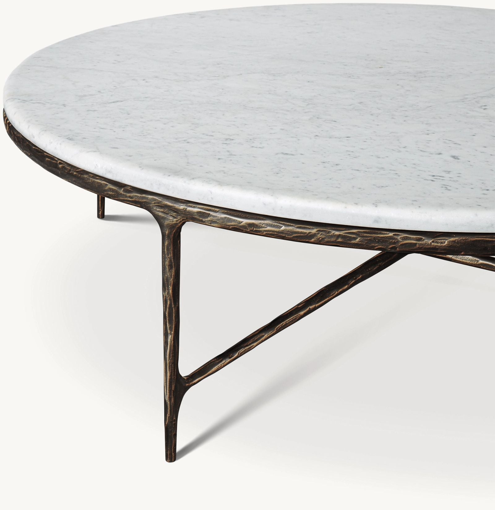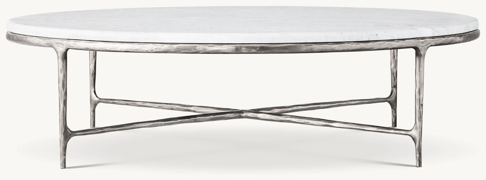 Our collection merges the rustic sensibility of hand-forged metal with cool marble. Employing an ancient fabrication process, artisans hand hammer the metal bars to reveal an alive, imperfect and organic texture. The pounded, tapered silhouettes are a rich counterpoint to the smooth, honed stone.
