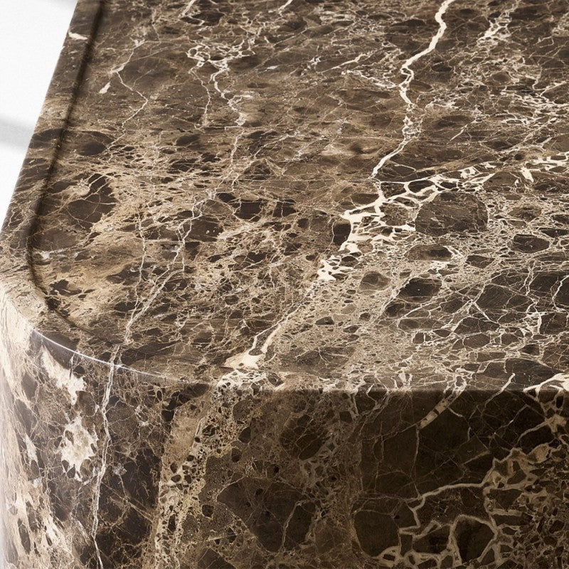 An exploration of line and form, this collection is inspired by the harmonious proportions and rhythmic curves of the human body. Each piece is adapted from original sketches and reinterpreted as monolithic volumes of stone. Recessed tabletops feature a raised perimeter edge.