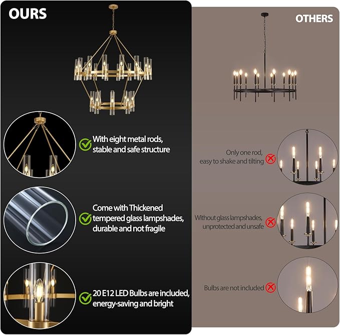 - Customized: You can easily customize the size, finish color, number of light sources, hanging wire length, etc. Simplify the customization process and communicate directly with designers online.