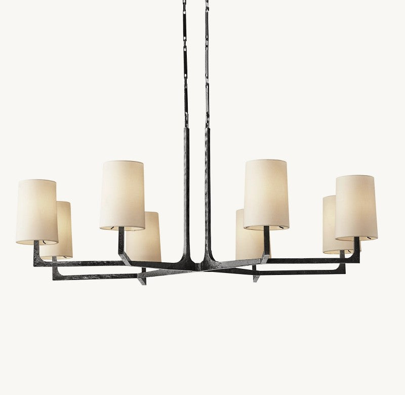 Spare and elegantly minimal, our fixture defines refined simplicity. A hand-forged, hammered metal frame – its arms perfectly tapered – showcases a tailored white linen shade. An exercise in balance and proportion, it conjoins light and dark, crisp right angles and understated curves.